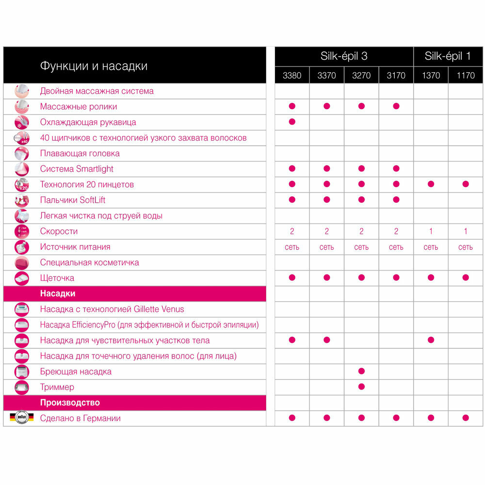 Эпилятор выбирала не долго, т.к. до этого также был Браун. Использовала несколько лет и была вполне довольна, пока он не сломался. Остановила выбор на данной модели. К сожалению, по прошествии года он перестал работать: силы его покинули:):):) Жужжит, но не дергает, после 1 минуты использования перестает в принципе работать. Муж разобрал, почистил ( думали, что он забился), но, видимо, причина не в этом. Теперь думаю, а стоит ли покупать следующий Браун...