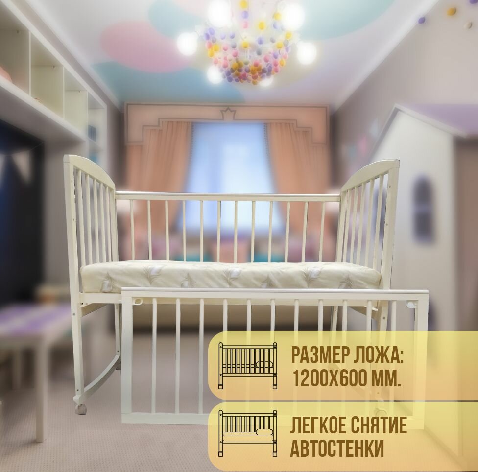 СохранитьКроватка Агат Золушка-2 автостенка, колесо-качалка, ящик, цвет Слоновая кость интересное: