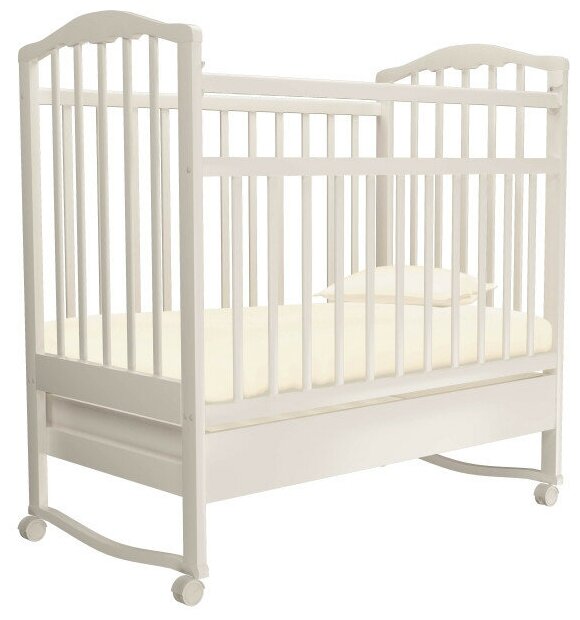 Кроватка детская "Золушка-2NEW" (колесо-качалка + ящик) белый