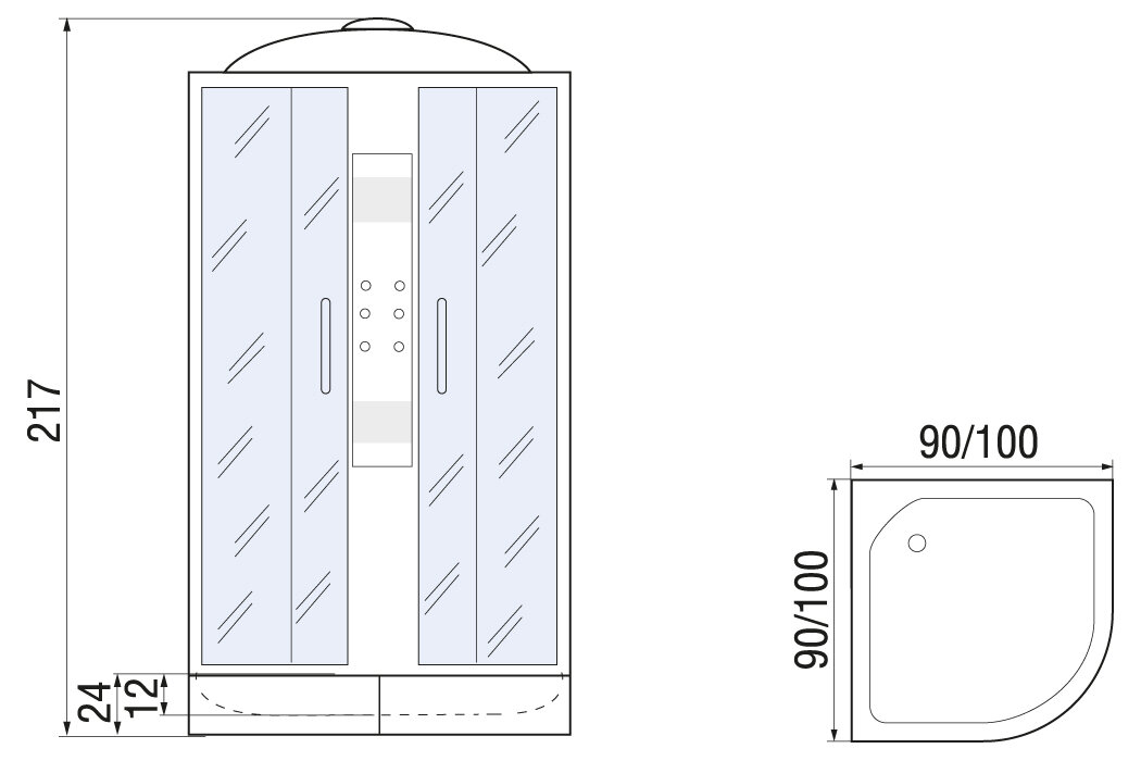 | Плюсы: | удобные раздвижные двери, верхняя подсветка, тропический душ, антискользящее покрытие поддона, вертикальный гидромассаж |