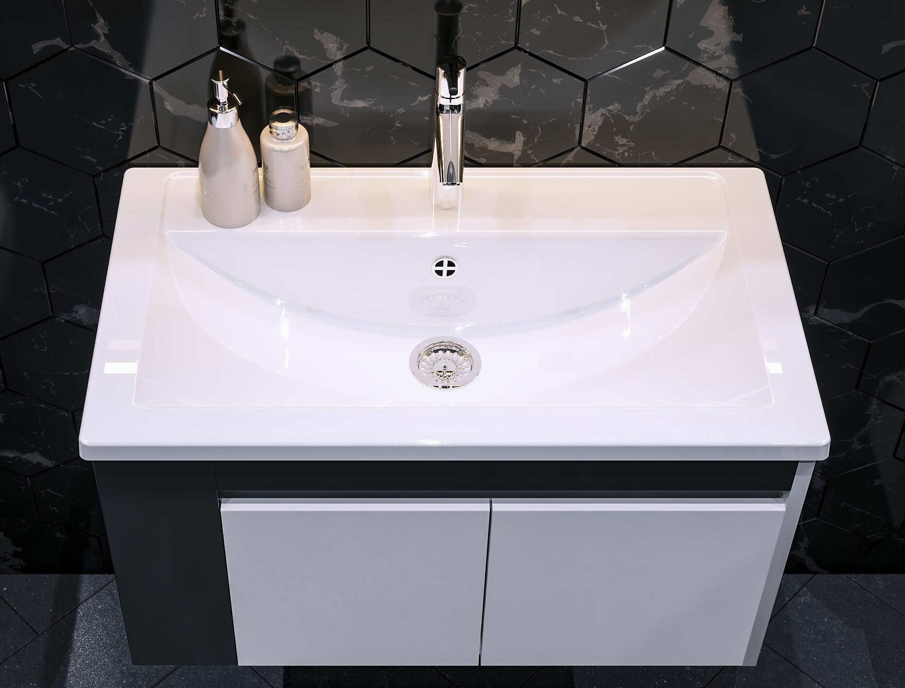 Мойка кухонная Ulgran из искусственного мрамора прямоугольная U-200, цвет: антрацит, база: 81.5х46 см, арт. U-200-343