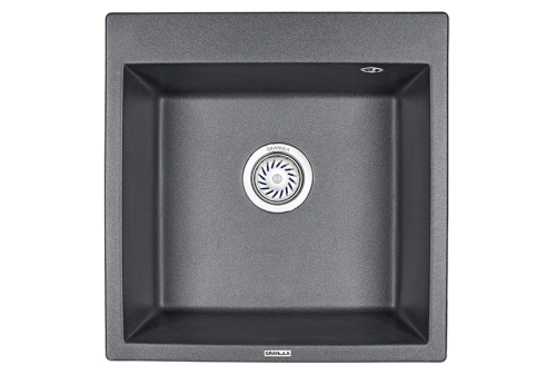 Мойка для кухни врезная кварц GRANULA 51x52x20 Кухонная раковина в комплекте с сифоном. Цвет черный металлик