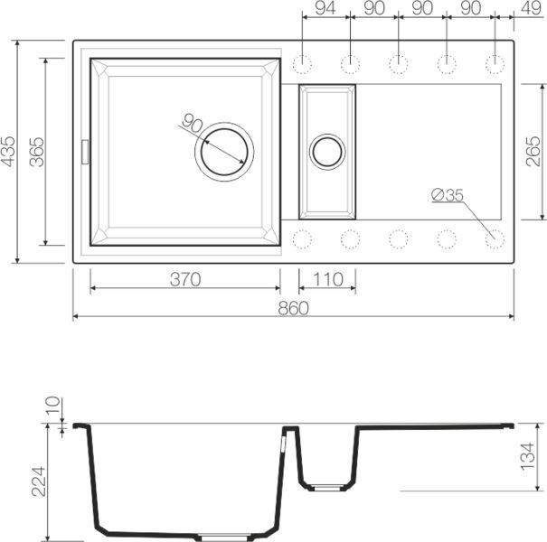 | Плюсы: | Двусторонняя, можно крутить крыло в нужную вам сторону (справа или слева), несколько установочных мест под кран, второй отсек для мытья овощей-фруктов, там же можно поставить измельчитель. |