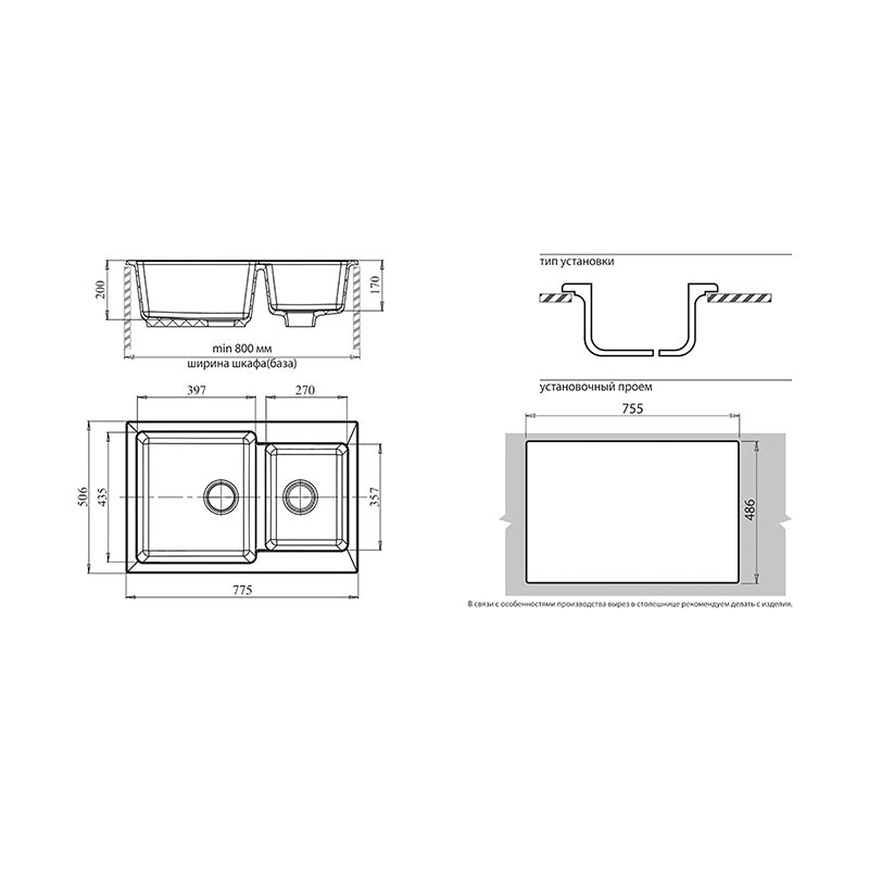 | Минусы: | - подвод и крепление смесителя между чашами, после установки мойки заменить смеситель снизу будет ОООООЧЕНь сложно