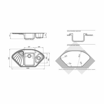 Мойка кухонная GranFest CORNER GF-C-1040E угловая 1039*560мм топаз, мрамор