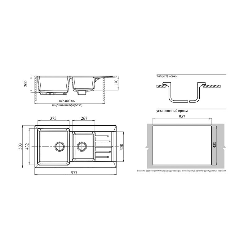 СохранитьМойка кухонная прямоугольная Granfest Practik (P-980KL черный) интересное: