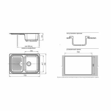 Мойка кухонная GranFest STANDART GF-S-780L чаша с крылом 775*500 мм топаз, мрамор