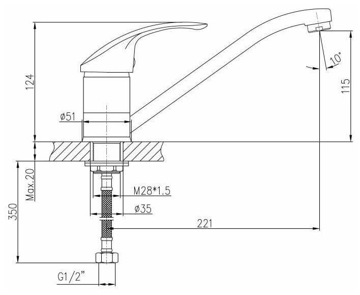 Смеситель для кухни Haiba HB4921 с гайкой и длинным поворотным изливом, хром.