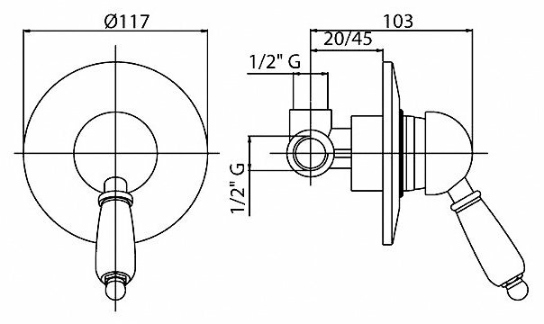 Встраиваемый смеситель для душа Cezares VINTAGE-DIM-02-Sw