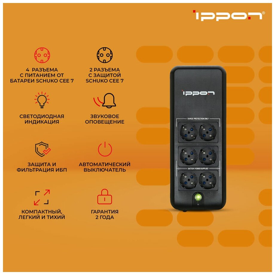 ИБП Ippon Back Verso 400 200W/400VA {6} (600014)