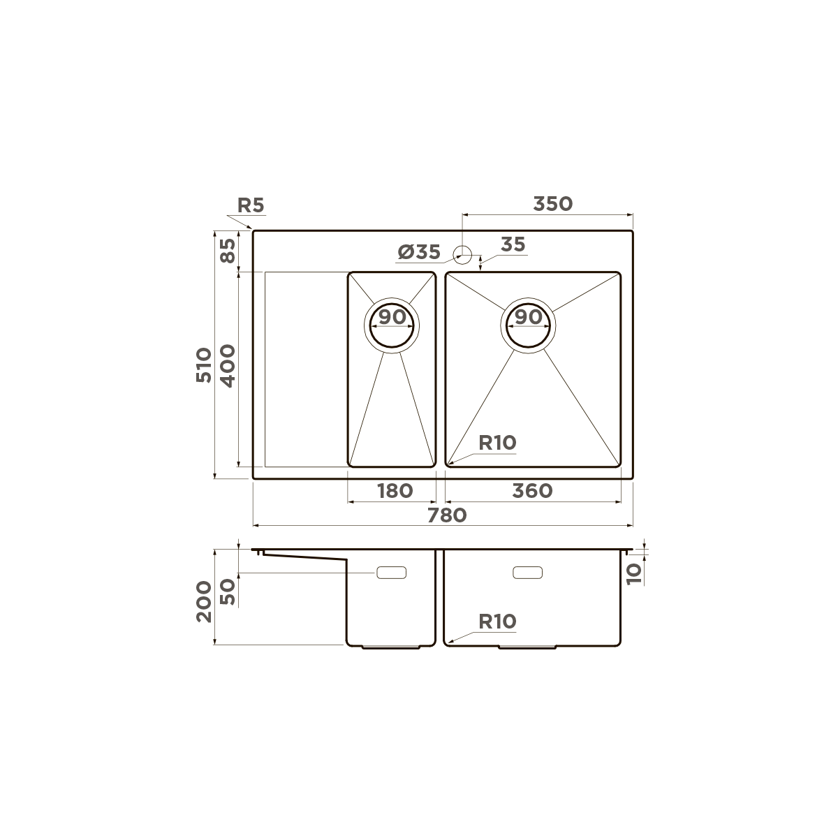 Кухонная мойка OMOIKIRI Akisame 78-2-IN-R 78х51см нерж.сталь/нержавеющая сталь