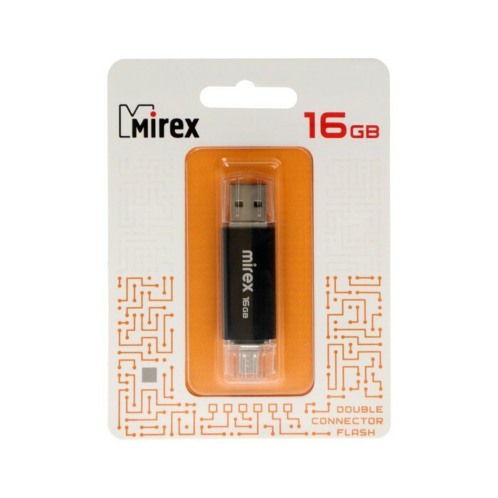 Флешка Mirex SMART BLACK. 16 Гб. USB2.0. USB/microUSB. чт до 25 Мб/с. зап до 15 Мб/с. черная 1803032