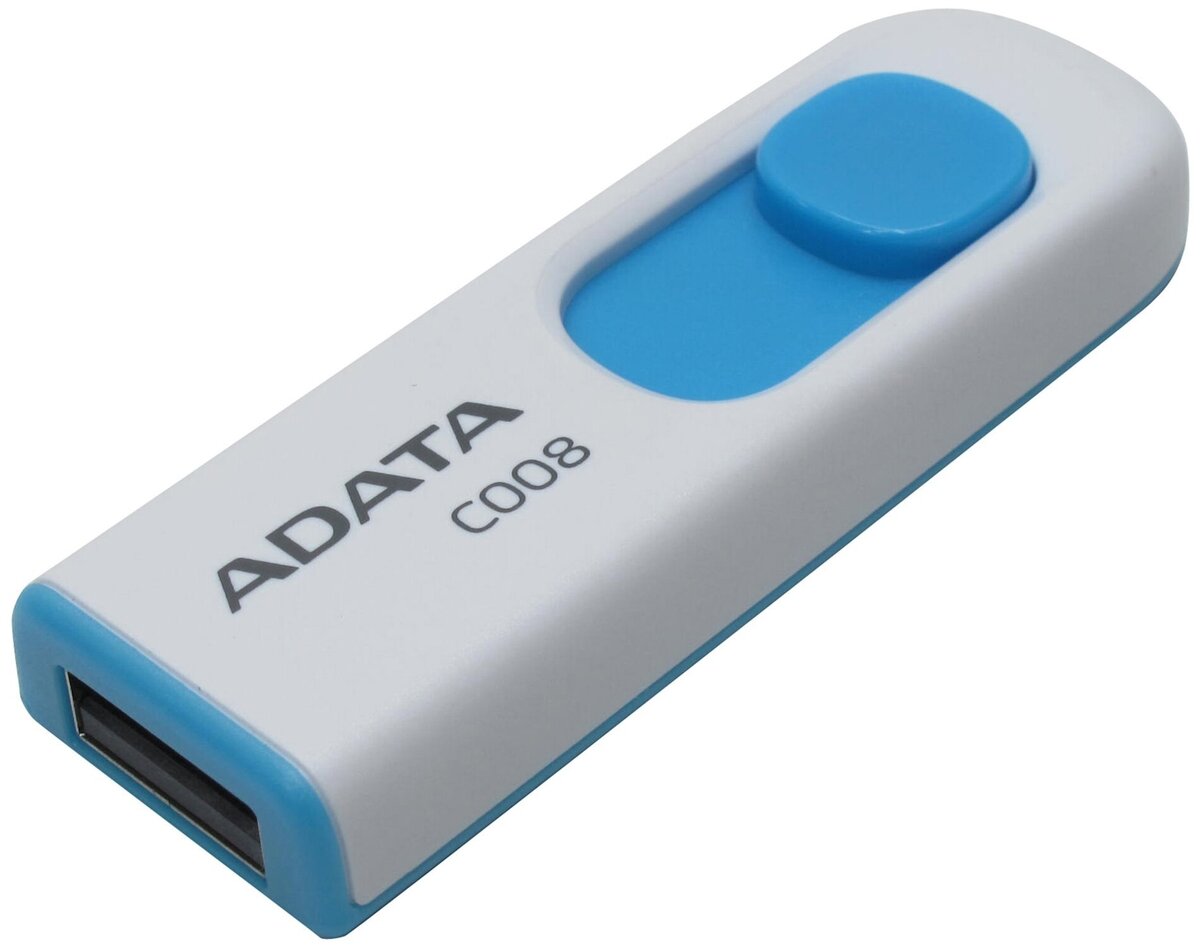 Флешка ADATA C008 64 ГБ, 1 шт., белый/голубой