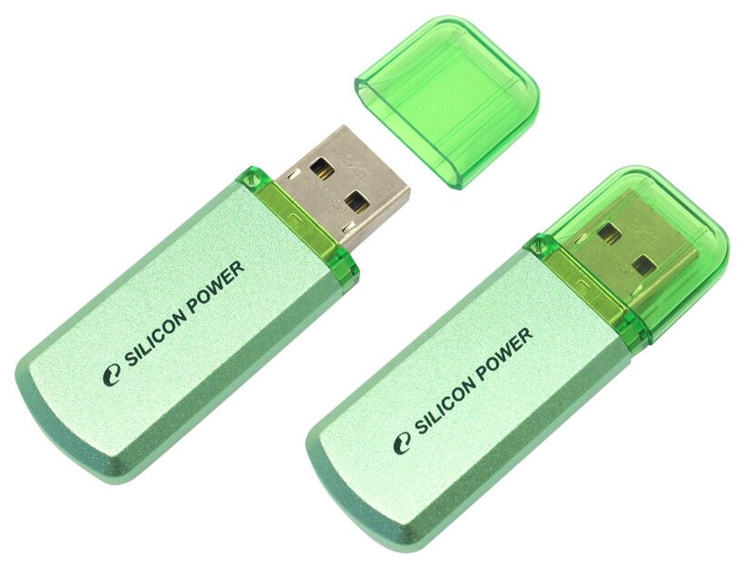 Комплект 2 штук, Флеш-память Silicon Power Helios 101 32GB USB 2.0, зеленый, алюминий