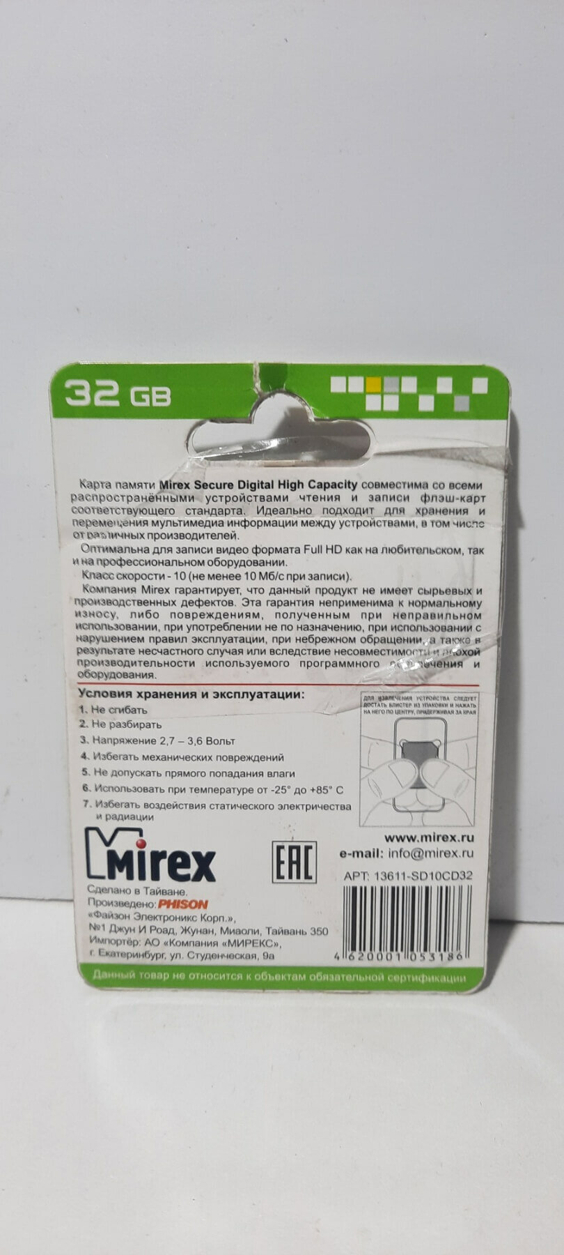 Ниже Вы можете прочитать отзывы на Mirex <13611-sd10cd32> Sdhc 32Gb Class10 ., ознакомится с подробными характеристиками, посмотреть интересные обзоры и фотографии на Mirex <13611-sd10cd32> Sdhc 32Gb Class10 ..