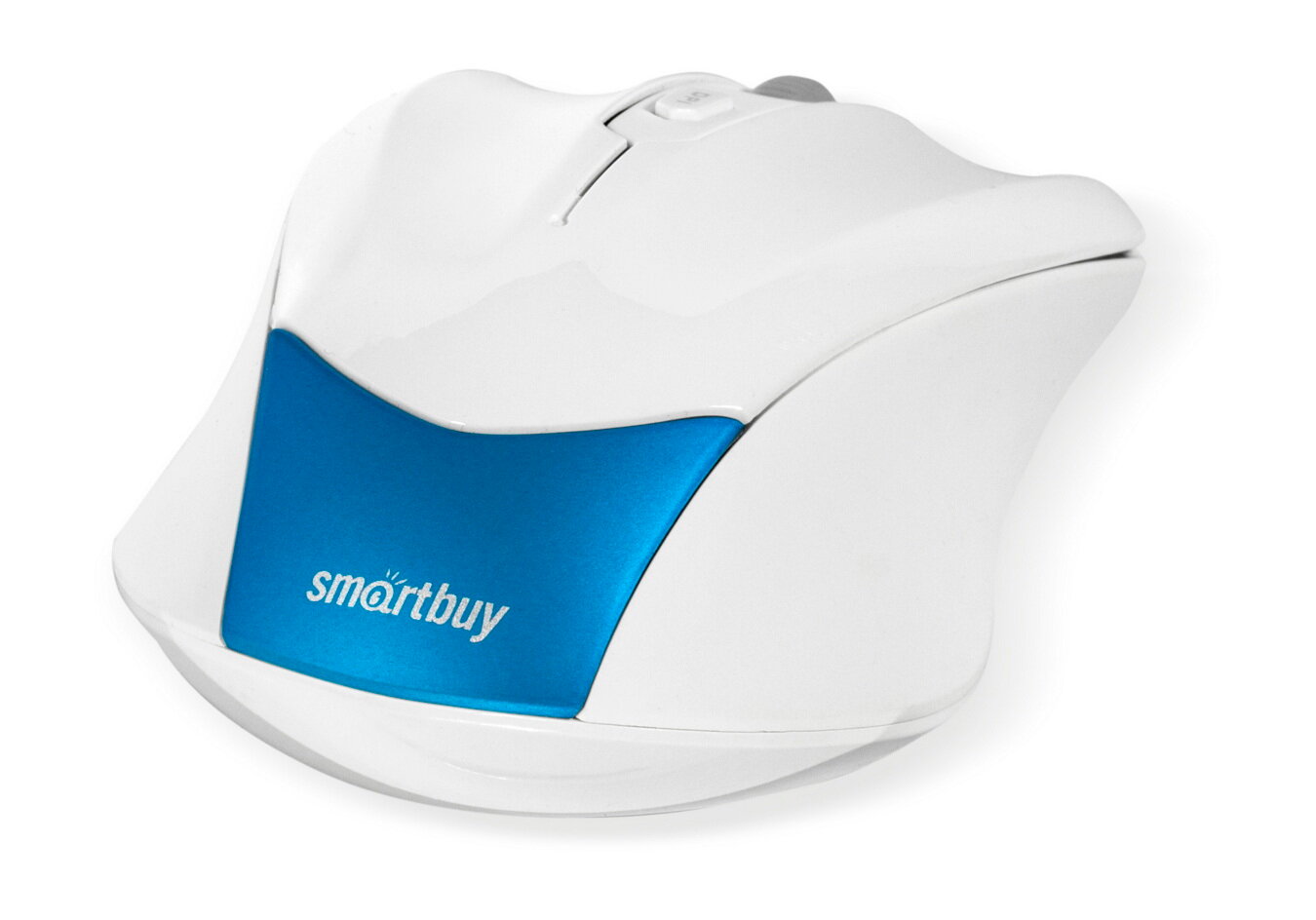 Мышь беспроводная SmartBuy, 356AG, 2000 DPI, оптическая, USB, 4 кнопки, цвет: белый, с голубой вставкой, (арт.SBM-356AG-BW)