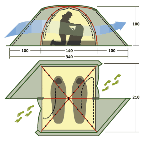 | Отзыв: | В палатку имеется два входа, за счет чего можно устроить сквозное проветривание. Пол так же водонепроницаемый. В ней достаточно комфортно, есть полог, за счет него снижается теплопотеря. |