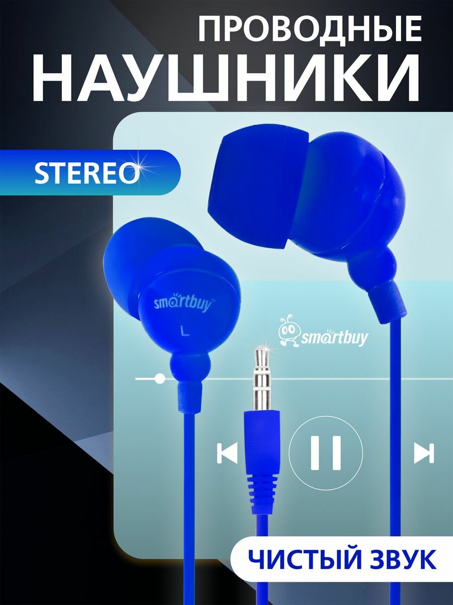 Купить Наушники-вкладыши SmartBuy "Color Trend", 1,2 м, синий (SBE-3400)