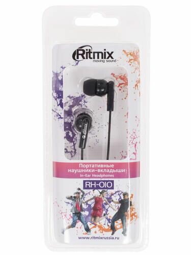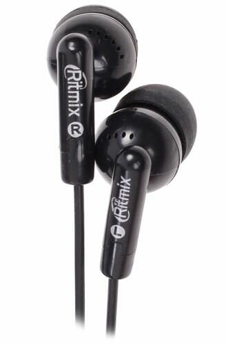 Наушники вкладыши Ritmix RH-010 внутриканальные(затычки) - чёрные