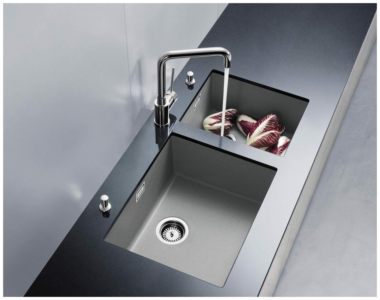 Кухонная мойка Blanco Subline 320-U темная скала, отводная арматура InFino