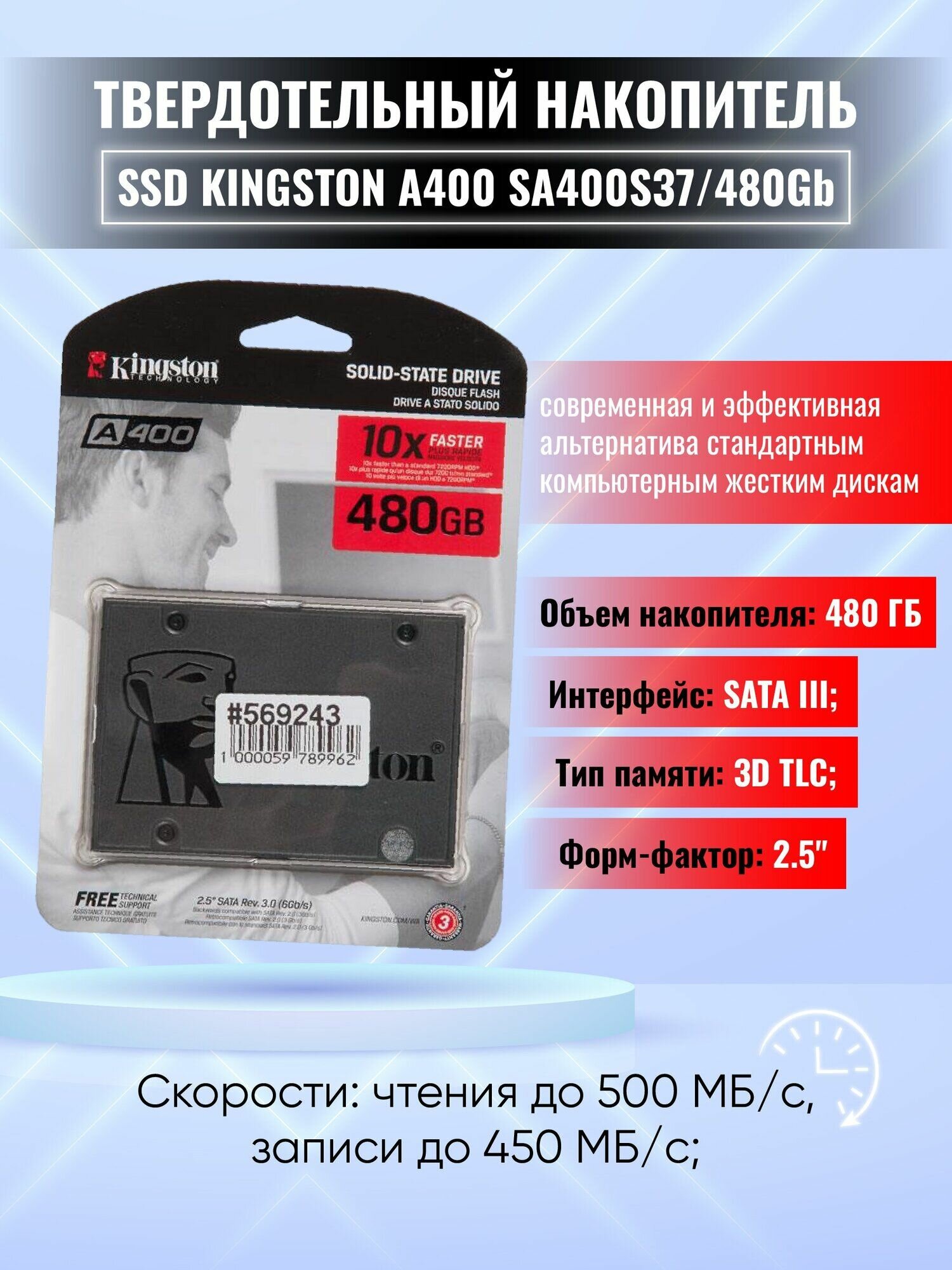 Купить Твердотельный накопитель Kingston A400 480 ГБ SATA SA400S37/480G