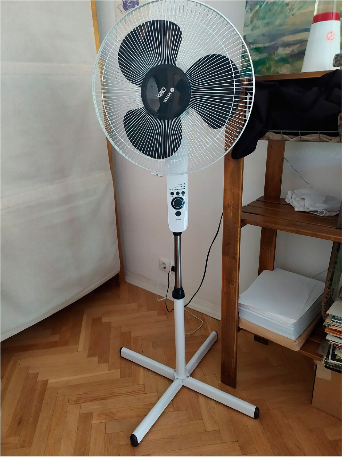 | Минусы: | На максимальной скорости началось лёгкое дребезжание, выяснили- это кнопка «ON/OFF”на самой стойке вентилятора. Наклеили сверху маленький кусочек скотча- вопрос решён) |