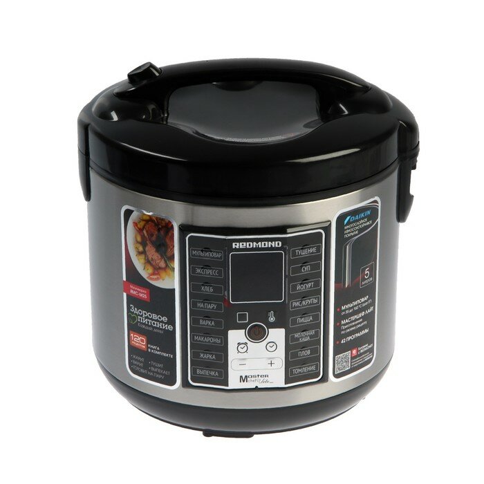 Купить REDMOND Мультиварка REDMOND RMC-M25, 860 Вт, 5 л, 16 программ, антипригарное покрытие, черная/сталь