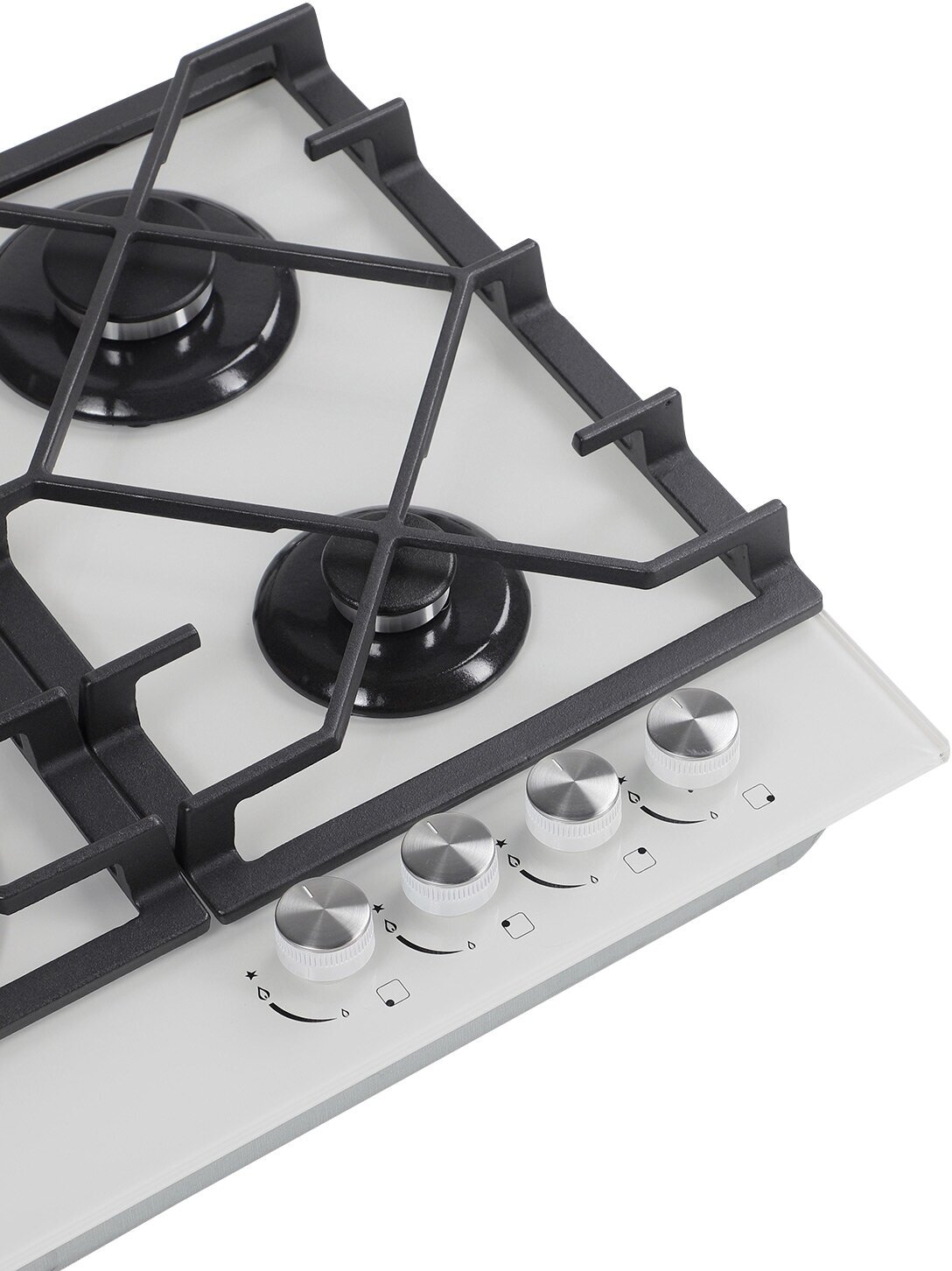 Варочная панель газовая встраиваемая Зигмунд & Штейн MN 175.61 W закаленное стекло белый 50х584х510мм 4 конфорки 2 решетки / газ-контроль /