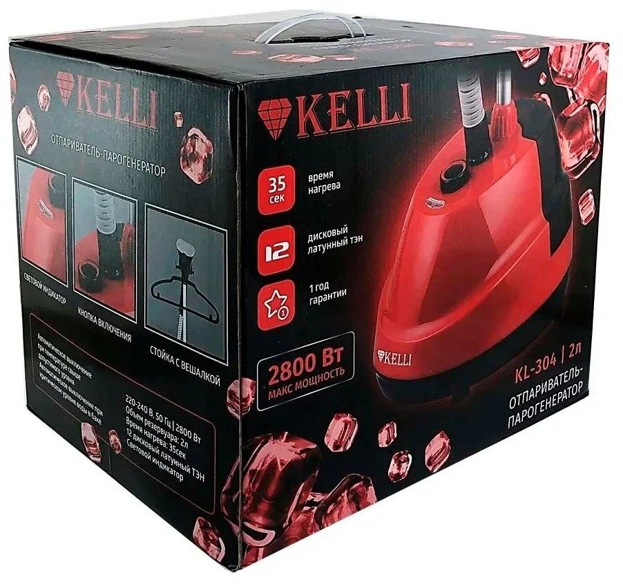 Отпариватель Kelli Kl-9, напольный, 2800 Вт, 3 л, 90 г/мин, шнур 2 м, красный Kelli 9415789 .