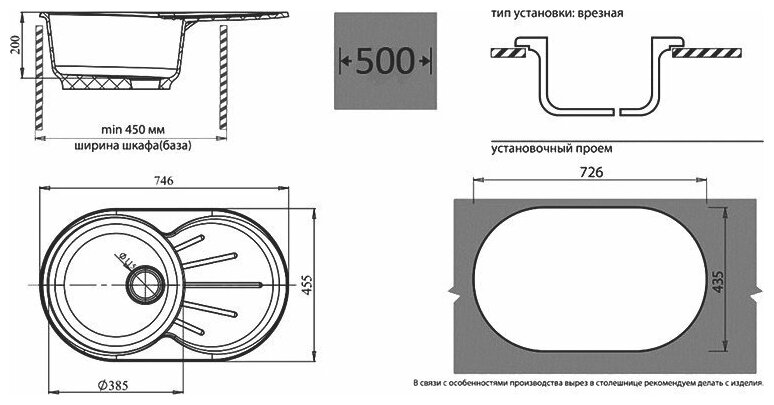 Мойка кухонная овальная Granfest Rondo (R-750L черный)
