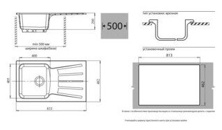 Мойка GRANFEST GF-S850L чаша + крыло 833х482мм (иней)