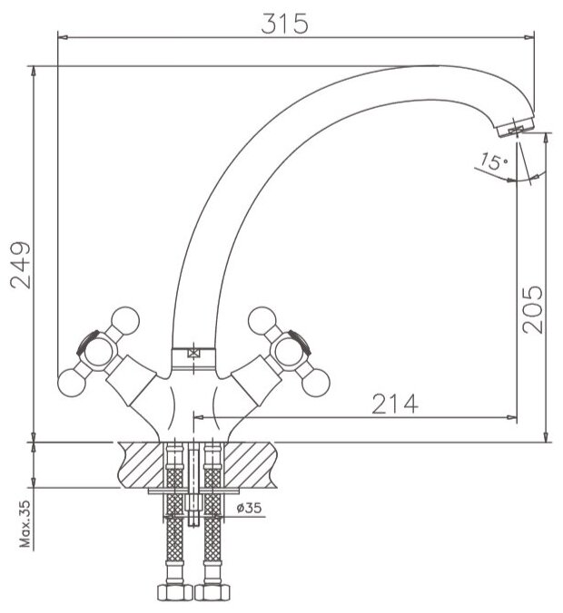 Смеситель Haiba HB4719, для кухонной мойки, двуручковый, с высоким поворотным изливом
