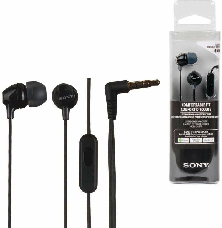 Наушники Sony MDR-EX15AP Black, 3.5 мм, вкладыши, черный [mdr-ex15apb]