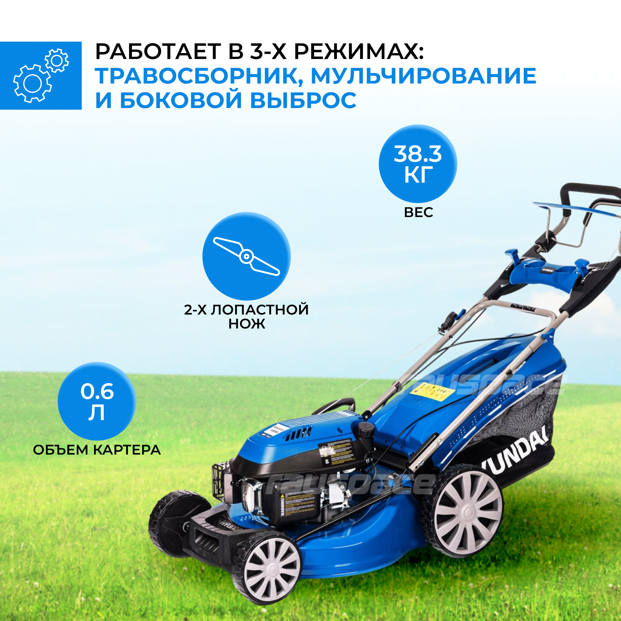 Газонокосилка бензиновая Hyundai L 5300S blue