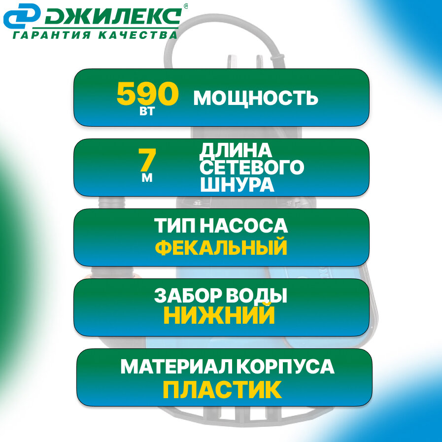 Насос фекальный 230/8 (750Вт, 230л/мин, напор 8м, ?частиц 35мм, кабель 7м, глуб. 8м, корпус - пластик) ДЖИЛЕКС 5401