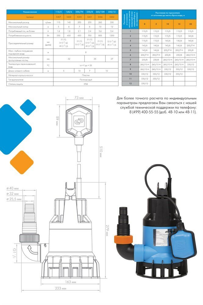 | Функции | защита от сухого хода / защита от перегрева / поплавковый выключатель |