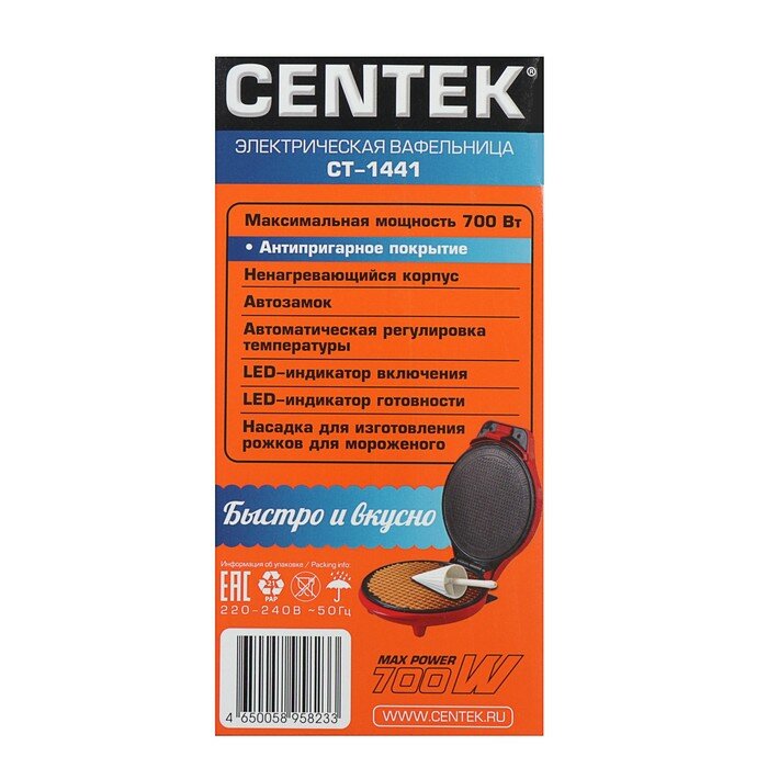 Ниже Вы можете прочитать отзывы на Электровафельница Centek CT-1441, 700 Вт, тонкие вафли, антипригарное покрытие, красная, ознакомится с подробными характеристиками, посмотреть интересные обзоры и фотографии на Электровафельница Centek CT-1441, 700 Вт, тонкие вафли, антипригарное покрытие, красная.