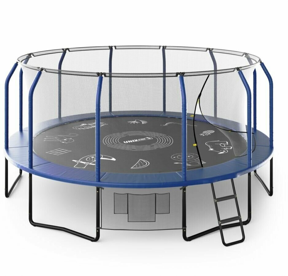 Батут уличный Unix Line 16 FT Supreme (blue) с сеткой и лестницей blackstep