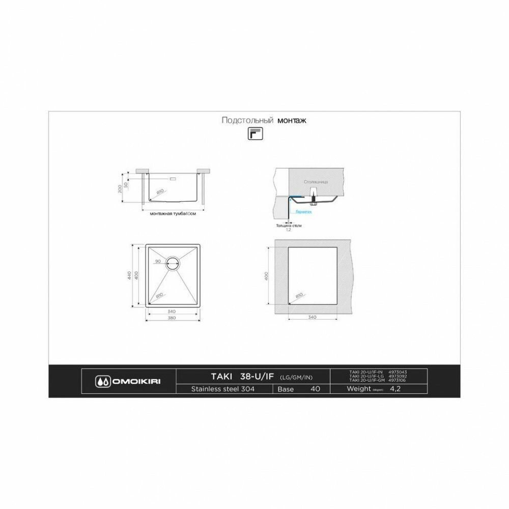 СохранитьКухонная мойка Omoikiri Taki 38-U/IF-GM 38х44 вороненая сталь интересное: