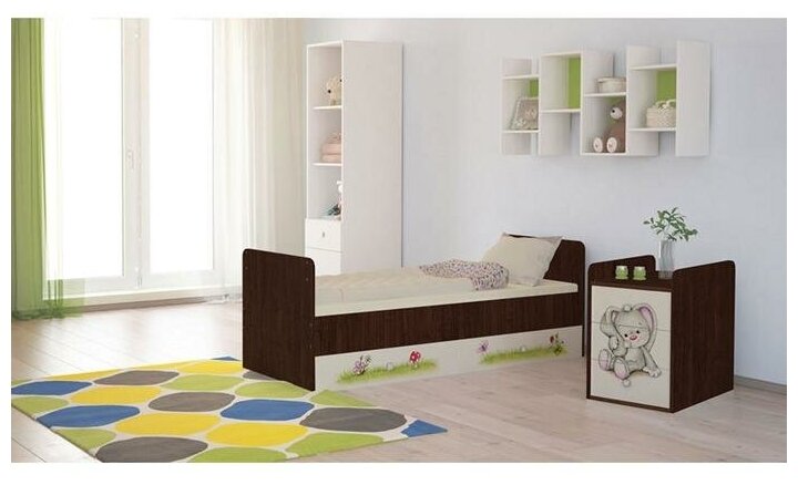 Кровать детская Фея 1100 Зайчонок, венге-бежевый