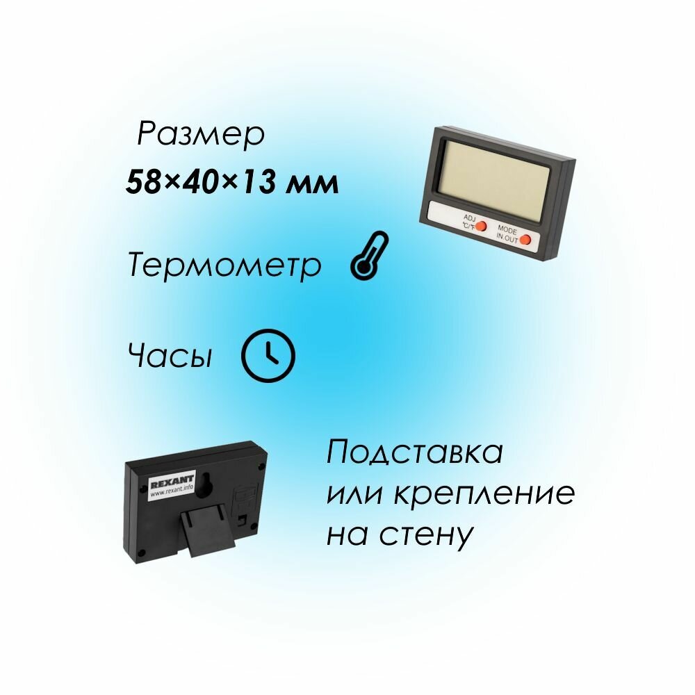 Термометр REXANT электронный, комнатно-уличный с часами