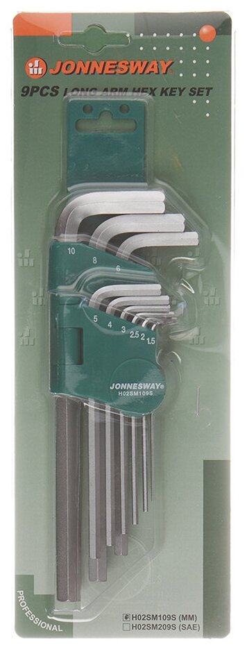 Купить H02SM109S Jonnesway Комплект угловых шестиграников LONG 1,5-10мм, 9 предметов S2 материал