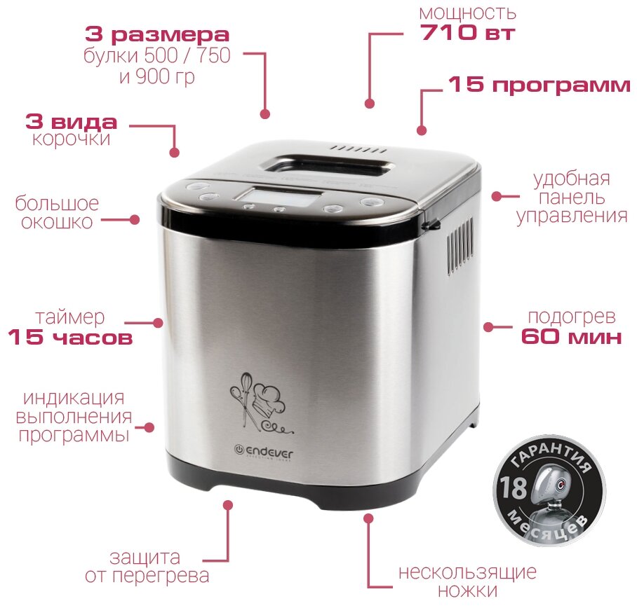 Хлебопечь ENDEVER MB-52 серебристый