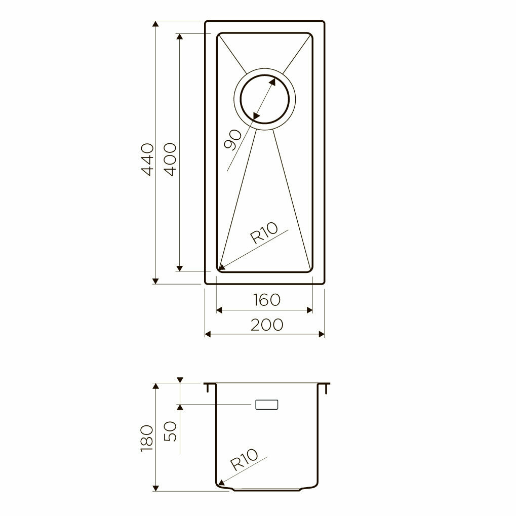 Кухонная мойка OMOIKIRI Taki 20-U/IF-LG (20х44 см) нержавеющая сталь / светлое золото