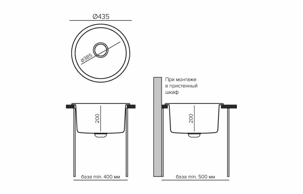 Мойка для кухни TOLERO Classic R-104 круглая каменная Кварц с возможностью нижней подклейки (№911 Черный)