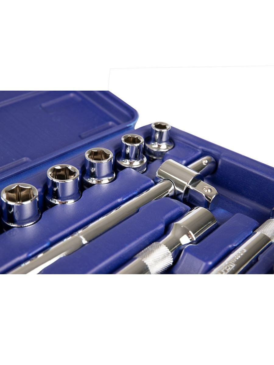| Головки торцевые подробно | 1/2": 8, 10, 12, 13, 14, 15, 16, 17, 18, 19, 21, 22 мм; вороток т-образный 1/2": 250 мм; удлинитель 1/2": 125, 250 мм; трещотка… 1/2": 45 зубов; карданный шарнир 1/2" ещёскрыть |