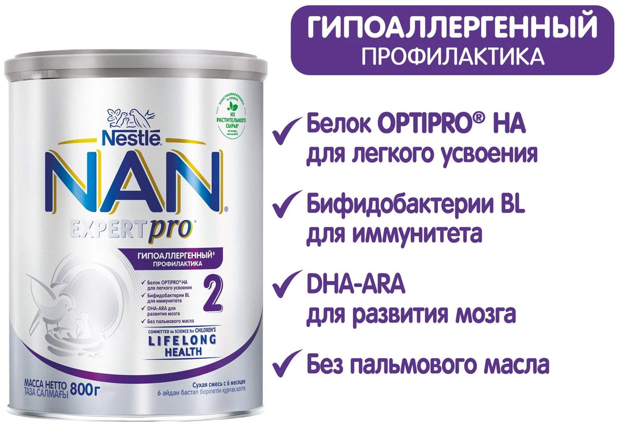 Молочная смесь Nestle NAN 2 ExpertPro, гипоаллергенный, с 6 месяцев, 800 г