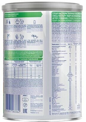 | Состав | деминерализованная сыворотка, лактоза, растительные масла (пальмовый олеин, низкоэруковое рапсовое масло, кокосовое масло, подсолнечное… масло), обезжиренное молоко, картофельный крахмал, кукурузный крахмал, мальтодекстрин, цитрат кальция, соевый лецитин, цитрат калия, хлорид магния, витамины, хлорид натрия, L-фенилаланин, хлорид кальция, таурин, L-гистидин, сульфат железа, сульфат цинка, инозит, культура термофильных бактерий (не менее 10 7 КОЕ/г), культура бифидобактерий (не менее 10 6 КОЕ/г), L-карнитин, сульфат меди, йодид калия, сульфат марганца, биотин, селенат натрия ещёскрыть |