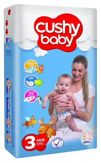 Детские подгузники 3 размер Cushy Baby для новорожденных детей весом от 4-9 кг большая пачка 70 шт интересное: