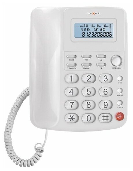 Телефон проводной Texet TX-250, ЖК дисплей, повторный набор, белый ( Артикул 344182 )
